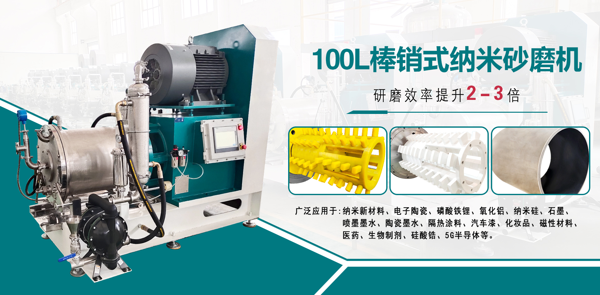 工業級棒銷動態砂磨機廣泛應用于微米級亞微米級、納米級的中高粘度物料的研磨,動靜環間隙出料,棒銷轉子結構滿足不同尺寸、不同研磨細度以及不同研磨工藝的生產需求 臥式砂磨機,適用于對研磨精度要求高的化工物料,連續封閉式高效率濕式研磨分散。 輸送泵有氣動隔膜泵和圓弧泵、刮板泵研磨介質為氧化錯珠,根據物料及細度要求選擇介質大小